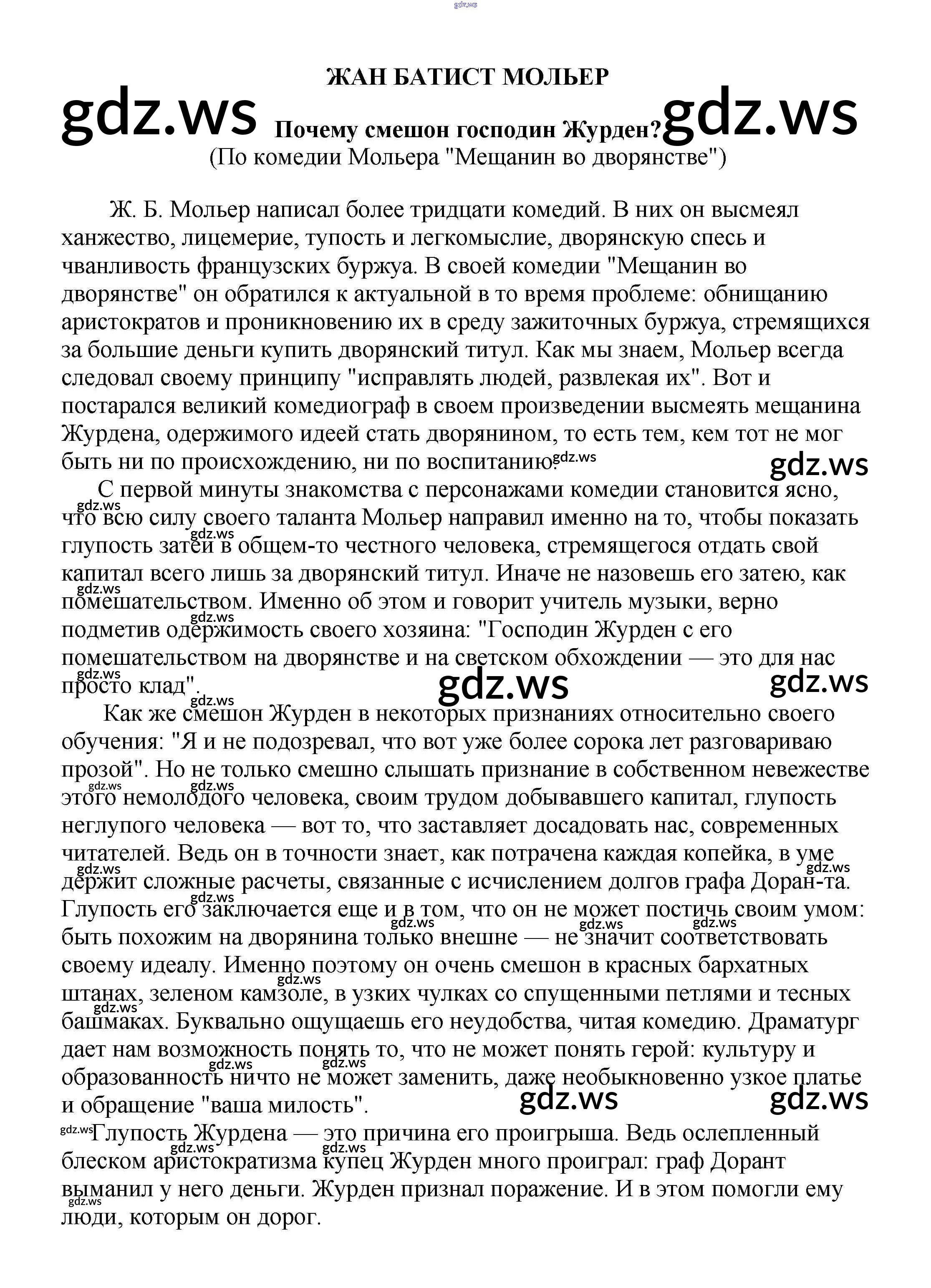 Почему смешон господин Журден? (По комедии Мольера "Мещанин во дворянстве")