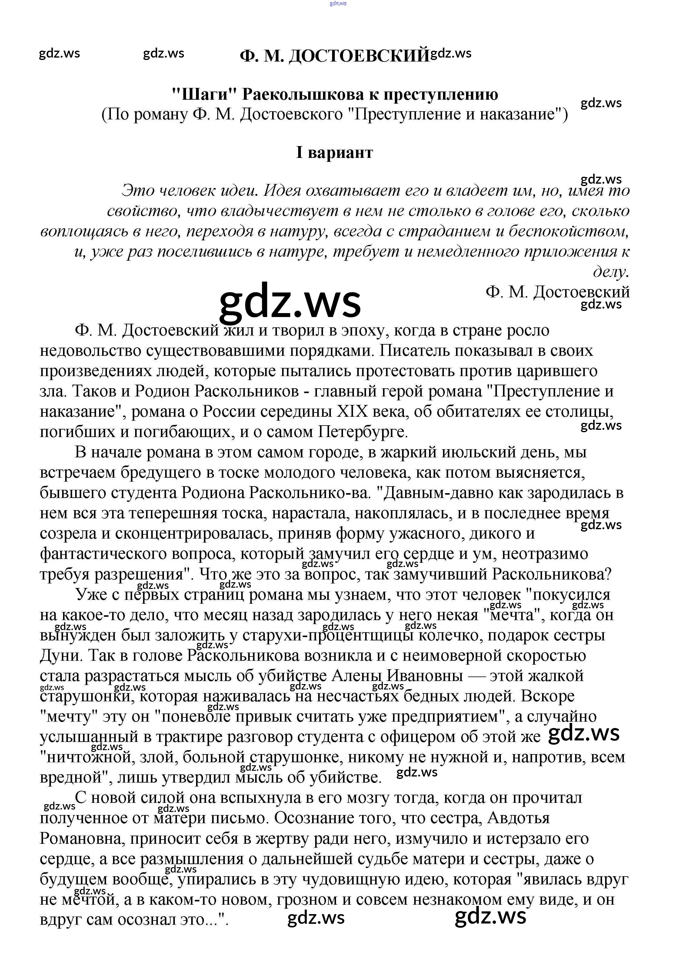 10 класс / сочинения по русской литературе / "Шаги" Раеколышкова к преступлению (По роману Ф. М. Достоевского "Преступление и наказание")