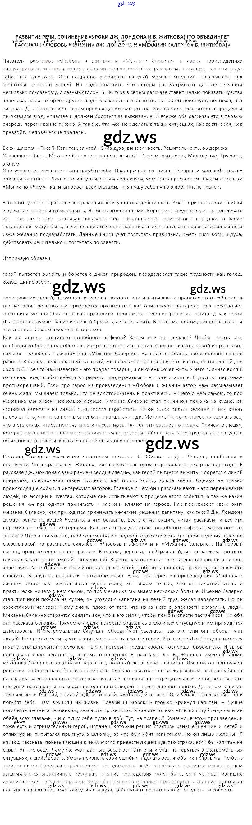 Развитие речи. Уроки Дж. Лондона и Б. Житкова (что объединяет рассказы Любовь к жизни Дж. Лондона и Механик Салерно Б. Житкова)