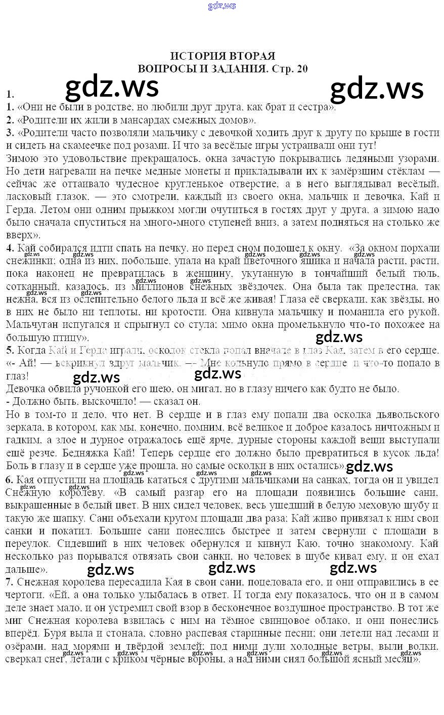 Готовый ответ Вопросы и задания на стр. 20 Часть 2 - Литературе 5 класс Курдюмова Учебник-хрестоматия Вертикаль ФГОС