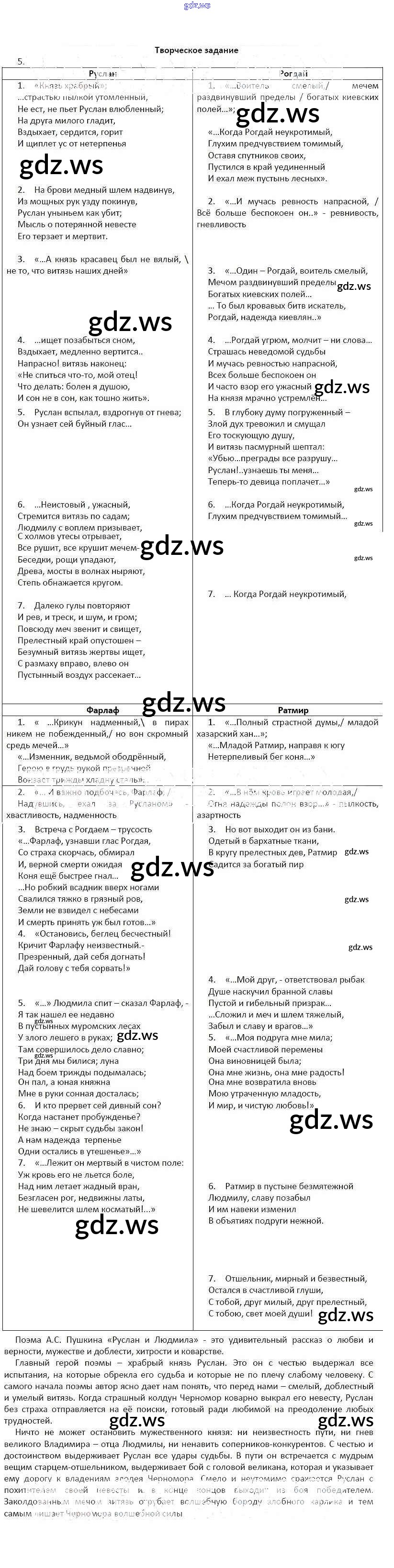 Готовый и полный ответ к Александр Сергеевич Пушкин Руслан и Людмила Часть 1 - Литературе 5 класс Ланин Рабочая тетрадь Алгоритм успеха ФГОС