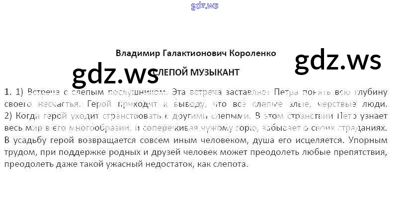 Готовый и полный ответ к Владимир Галактионович Короленко Слепой музыкант Часть 2 - Литературе 5 класс Ланин Рабочая тетрадь Алгоритм успеха ФГОС