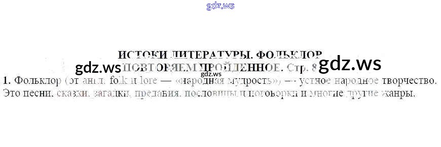 Готовый ответ Повторяем пройденное (стр.8) Истоки литературы. Фольклор - Литературе 5 класс Ланин Учебник ФГОС
