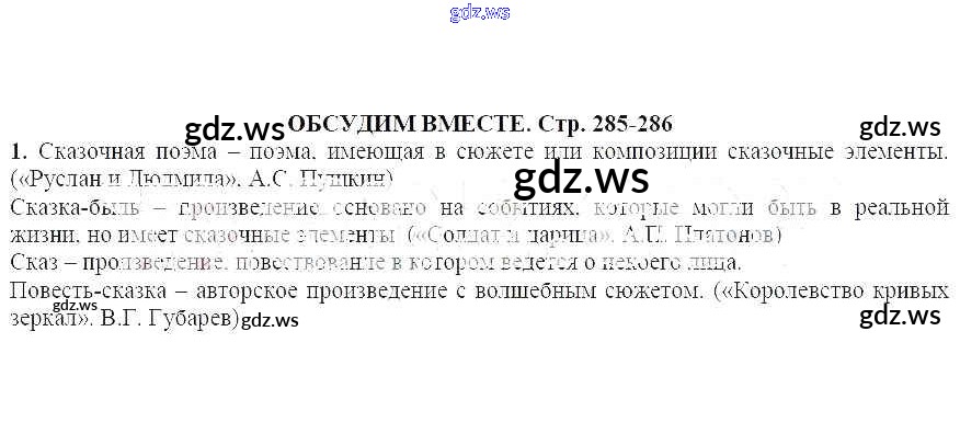 Готовый и полный ответ к Обсудим вместе (стр.285-286) Виталий Георгиевич Губарев. Королевство кривых - Литературе 5 класс Ланин Учебник ФГОС