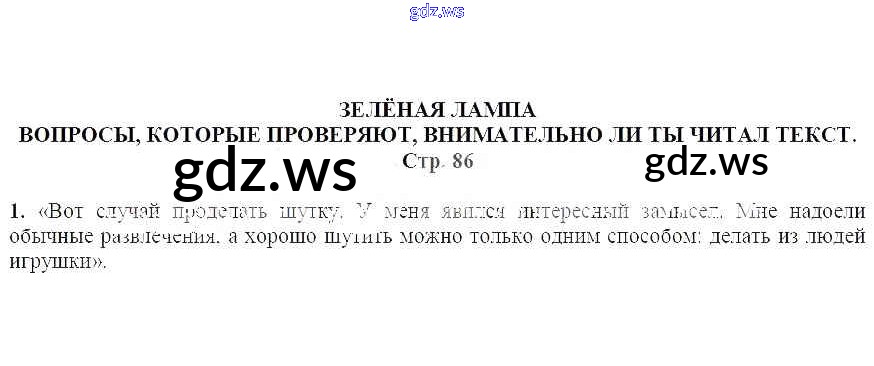 Готовый ответ Вопросы, которые проверяют, внимательно ли ты читал текст (стр. 86) Зеленая лампа - Литературе 5 класс Москвин Учебник Алгоритм успеха ФГОС