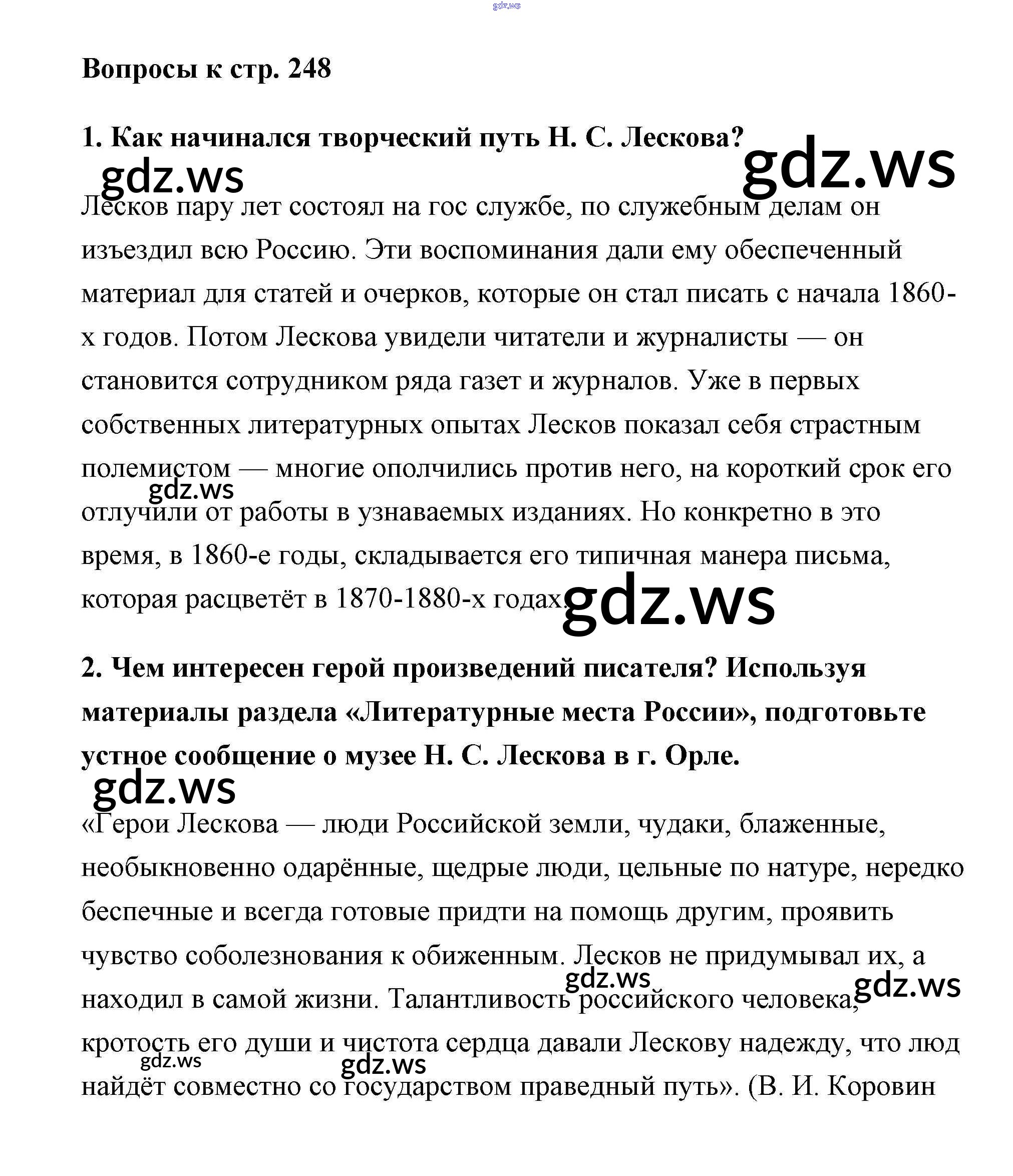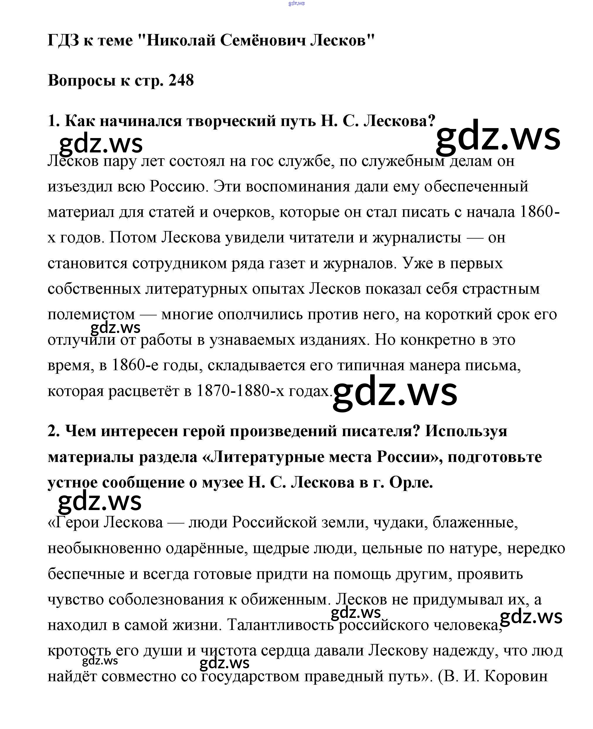 Готовый ответ Лесков Часть 1 (Старое 15-е издание) - Литературе 6 класс Полухина Учебник ФГОС
