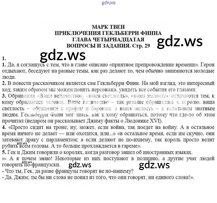 Готовый и полный ответ к Вопросы и задания Марк Твен. Приключения Гекльберри Финна. Глава четырнадцатая - Литературе 6 класс Курдюмова Учебник-хрестоматия Вертикаль ФГОС