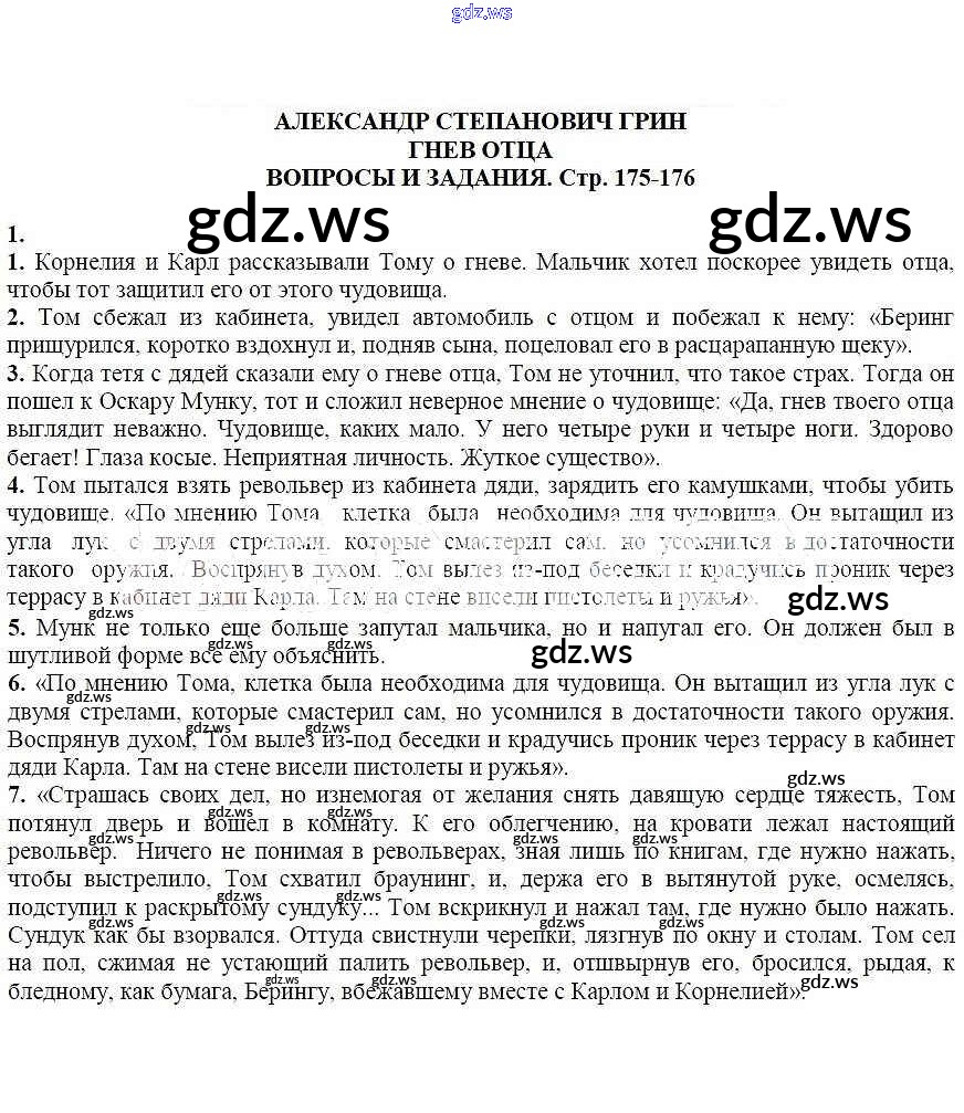 Готовый и полный ответ к Вопросы и задания Александр Степанович Грин. Гнев отца - Литературе 6 класс Курдюмова Учебник-хрестоматия Вертикаль ФГОС