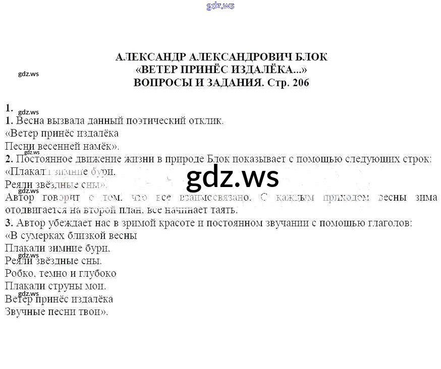 Готовый ответ Вопросы и задания Александр Александрович Блок. Ветер принёс издалёка - Литературе 6 класс Курдюмова Учебник-хрестоматия Вертикаль ФГОС