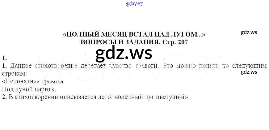 Готовый и полный ответ к Вопросы и задания Полный месяц встал над лугом - Литературе 6 класс Курдюмова Учебник-хрестоматия Вертикаль ФГОС