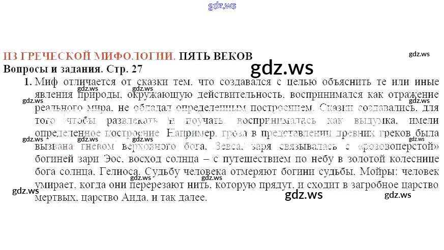 Готовый ответ Вопросы и задания, стр. 27 Из греческой мифологии. Пять веков - Литературе 6 класс Меркин Учебник Инновационная школа ФГОС