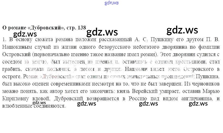 часть 1 / О романе «Дубровский», стр. 138 / 1