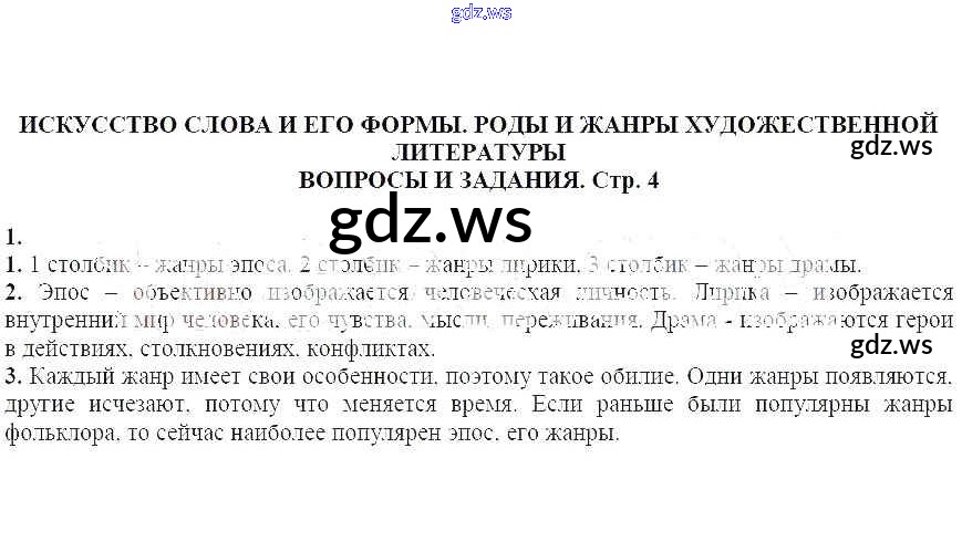 Готовый и полный ответ к Вопросы и задания Искусство слова и его формы. Роды и жанры художественной литературы - Литературе 7 класс Курдюмова Учебник-хрестоматия Вертикаль ФГОС