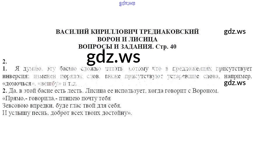 Готовый ответ Вопросы и задания Василий Кириллович Тредиаковский. Ворон и лисица - Литературе 7 класс Курдюмова Учебник-хрестоматия Вертикаль ФГОС