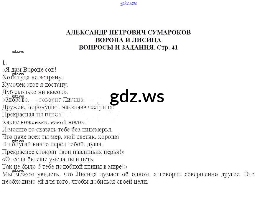 часть 1 / Александр Петрович Сумароков. Ворона и лисица / Вопросы и задания / 1