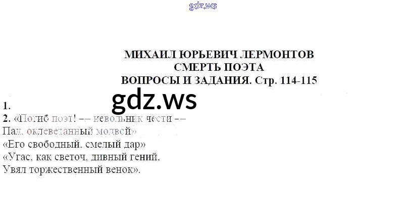 Готовый и полный ответ к Вопросы и задания Михаил Юрьевич Лермонтов. Смерть поэта - Литературе 7 класс Курдюмова Учебник-хрестоматия Вертикаль ФГОС