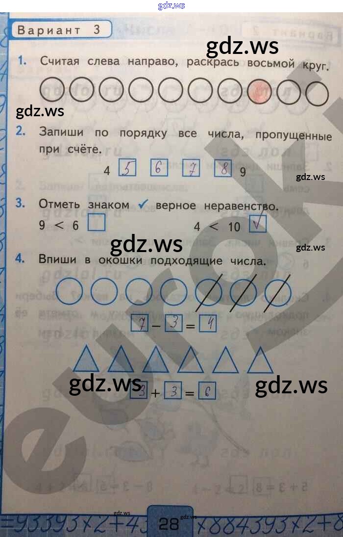 Готовый и полный ответ к Часть 1. Страницы - Математике 1 класс Рудницкая Контрольные работы УМК ФГОС