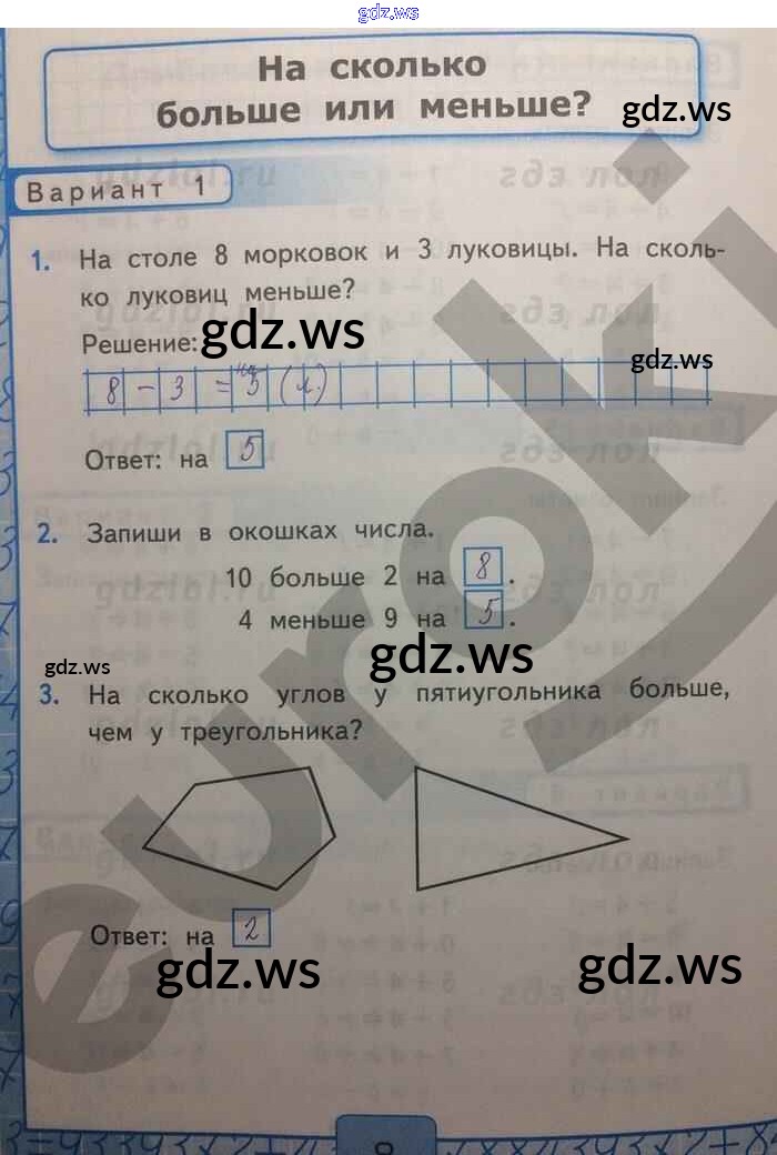 Готовый и полный ответ к Часть 2. Страницы - Математике 1 класс Рудницкая Контрольные работы УМК ФГОС