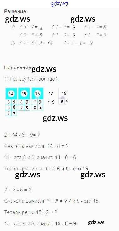 1. Вычисли. 15 - 7 = 16 - 8 = 17 - 8 = 18 - 9 = 15 - 9 = 16 - 7 =