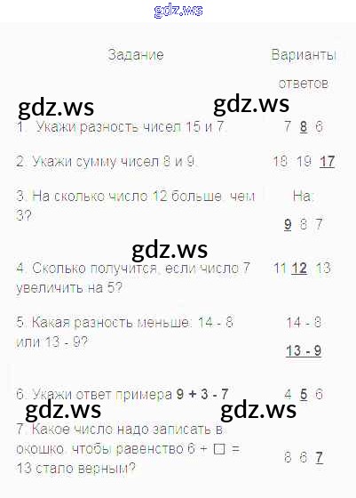 Найди правильный ответ и подчеркни его. Варианты ответов На: 9 8 7 11 12 13 14 - 8 13 - 9 8 6 7
