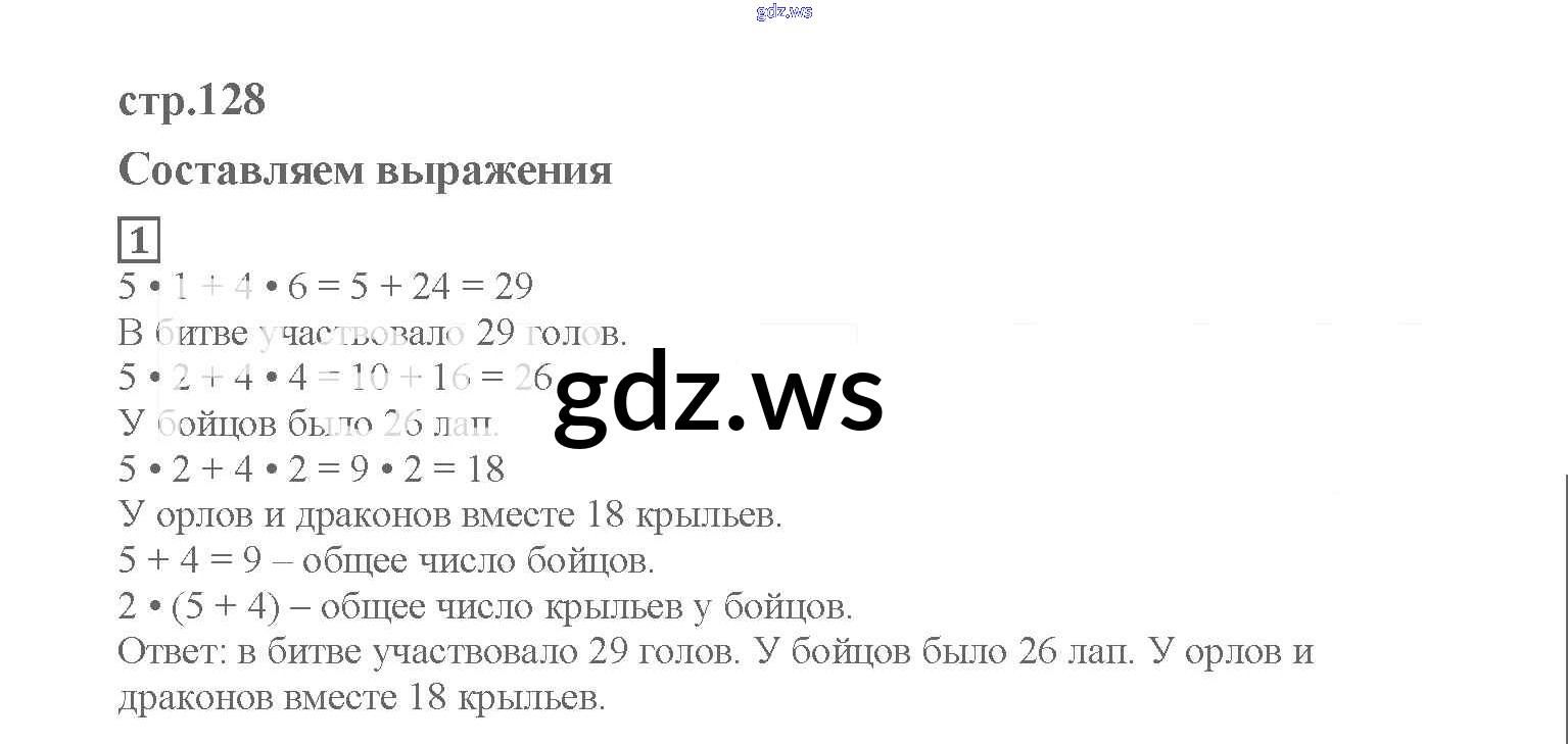 Готовый ответ Страница 128 Действия с выражениями - Математике 2 класс Башмаков Учебник Планета знаний ФГОС