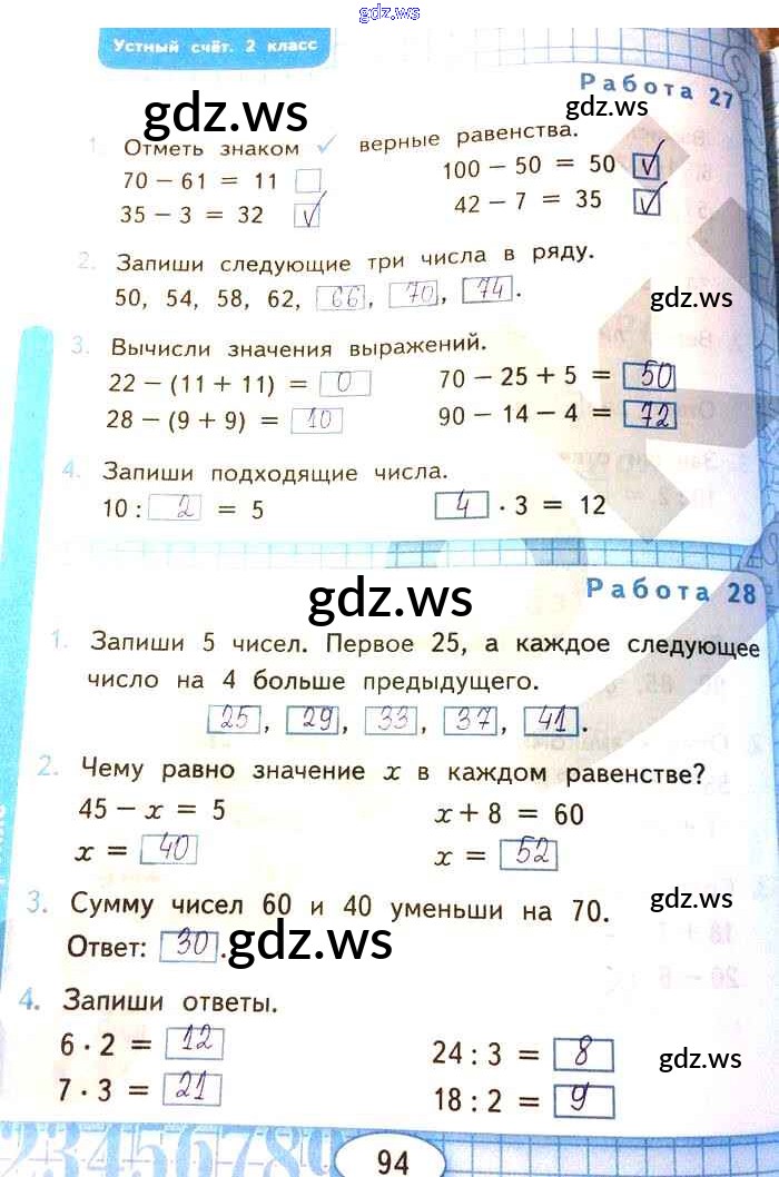 Готовый ответ Страницы - Математике 2 класс Рудницкая Рабочая тетрадь УМК ФГОС