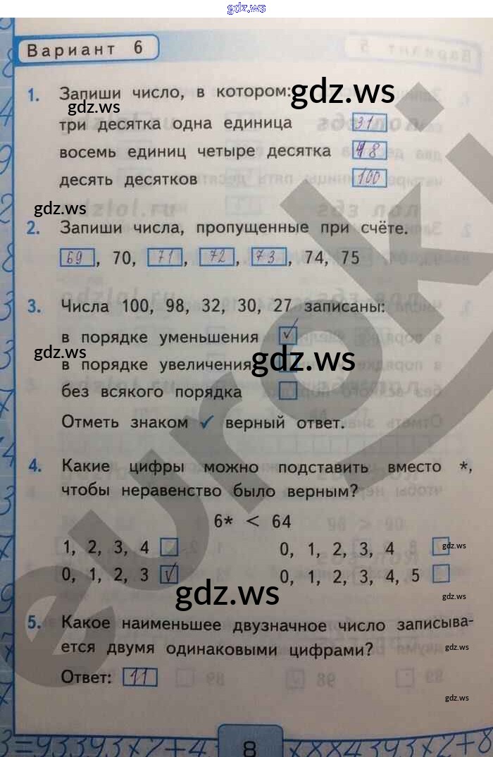 Готовый ответ Числа 20—100 Часть 1 - Математике 2 класс Рудницкая Контрольные работы УМК ФГОС