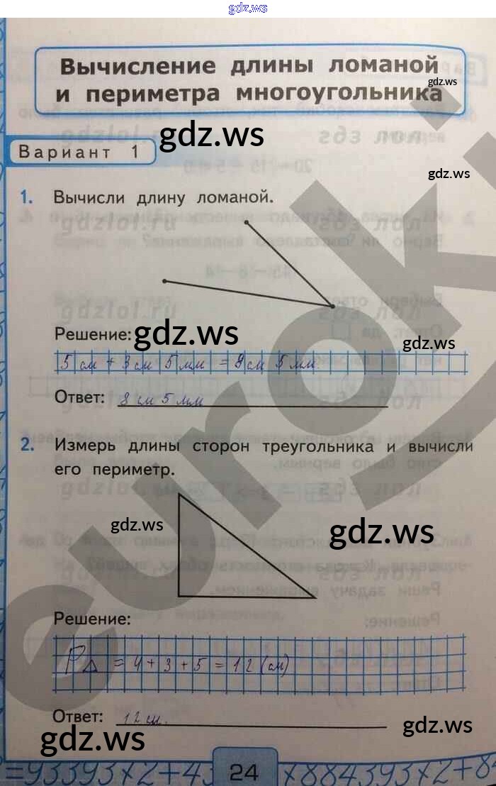 Готовый ответ Вычисление длины ломаной и периметра многоугольника Часть 1 - Математике 2 класс Рудницкая Контрольные работы УМК ФГОС
