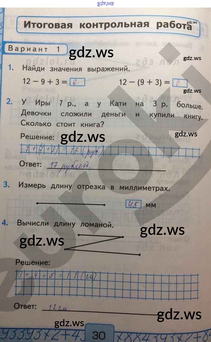 Готовый и полный ответ к Итоговая контрольная работа Часть 1 - Математике 2 класс Рудницкая Контрольные работы УМК ФГОС