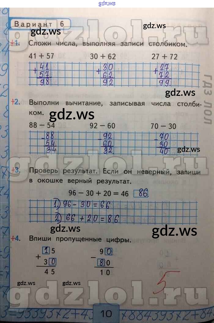 часть 2 / Сложение и вычитание без перехода через десяток / Вар-6