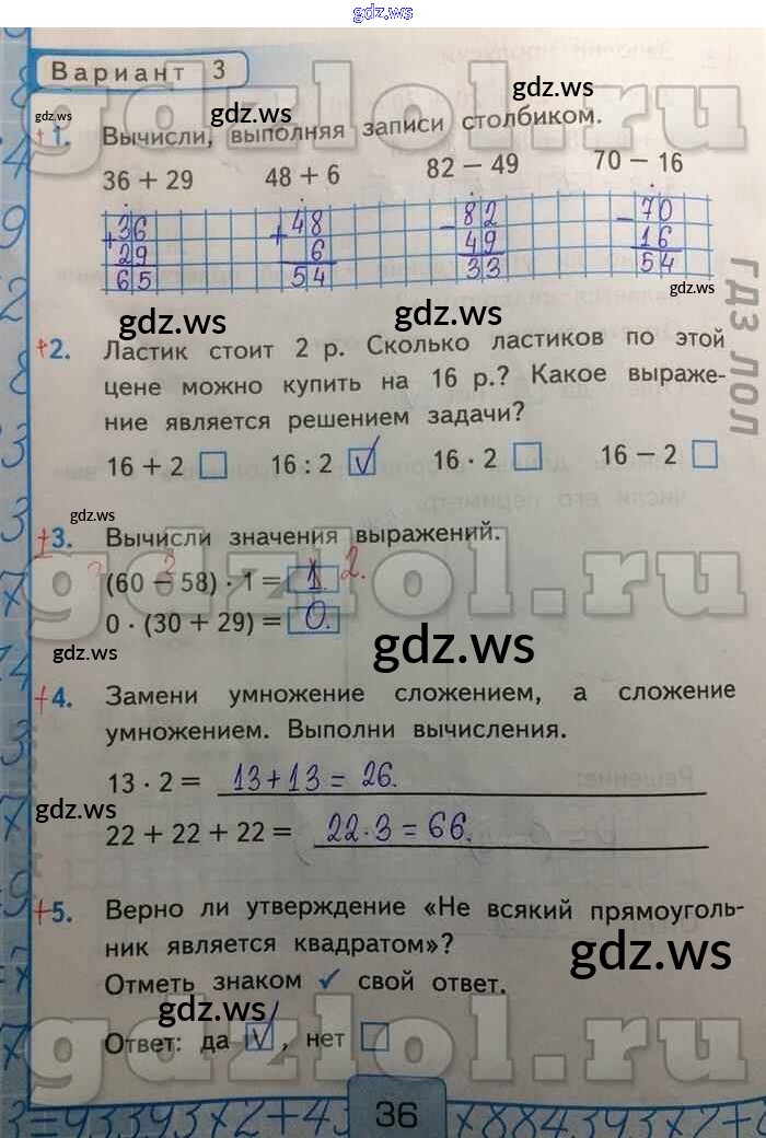 Готовый и полный ответ к Итоговая контрольная работа Часть 2 - Математике 2 класс Рудницкая Контрольные работы УМК ФГОС