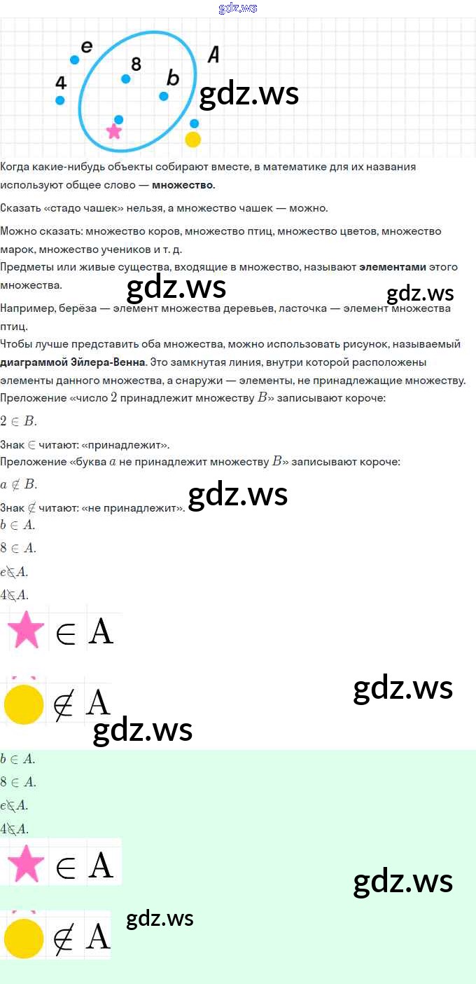 Готовый ответ Урок 5. Диаграмма Эйлера-Венна. Знаки ∈ и ∉ Часть 1 - Математике 3 класс Петерсон Учебник Учусь учиться ФГОС