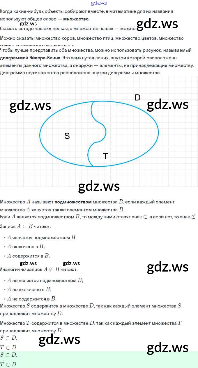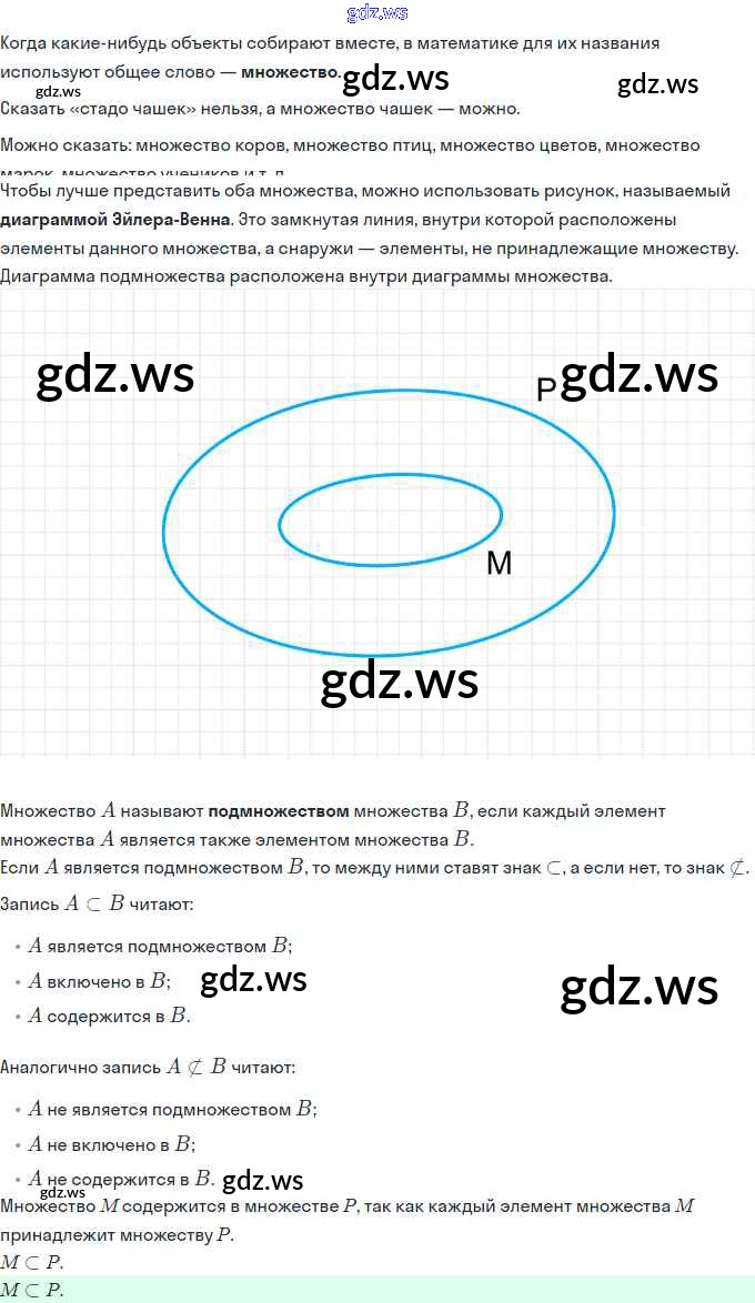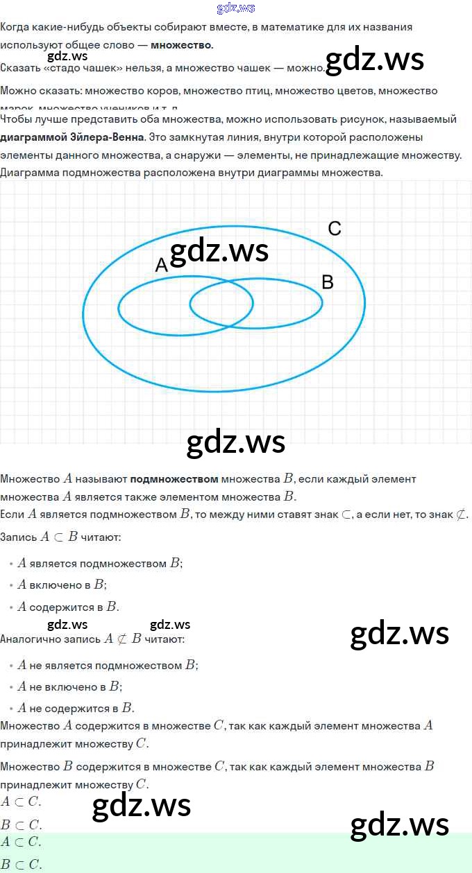 Готовый ответ Урок 7. Подмножество. Знаки ⊂ и ⊄ Часть 1 - Математике 3 класс Петерсон Учебник Учусь учиться ФГОС