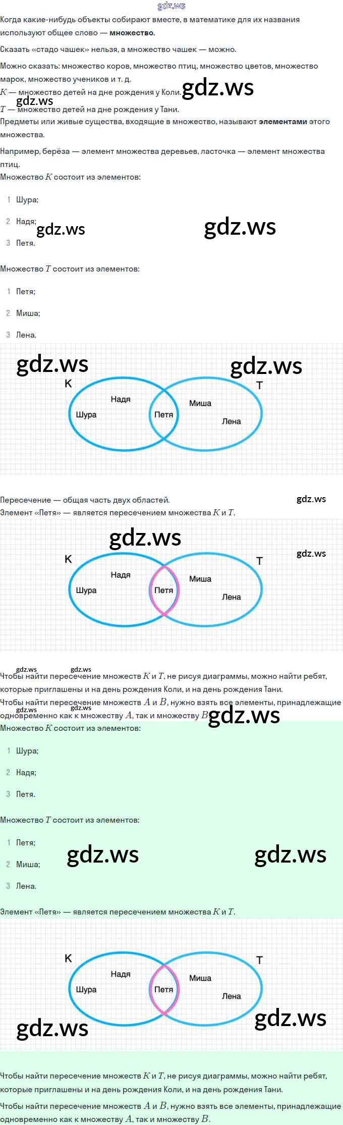 Готовый и полный ответ к Урок 10. Пересечение множеств. Знак ∩ Часть 1 - Математике 3 класс Петерсон Учебник Учусь учиться ФГОС