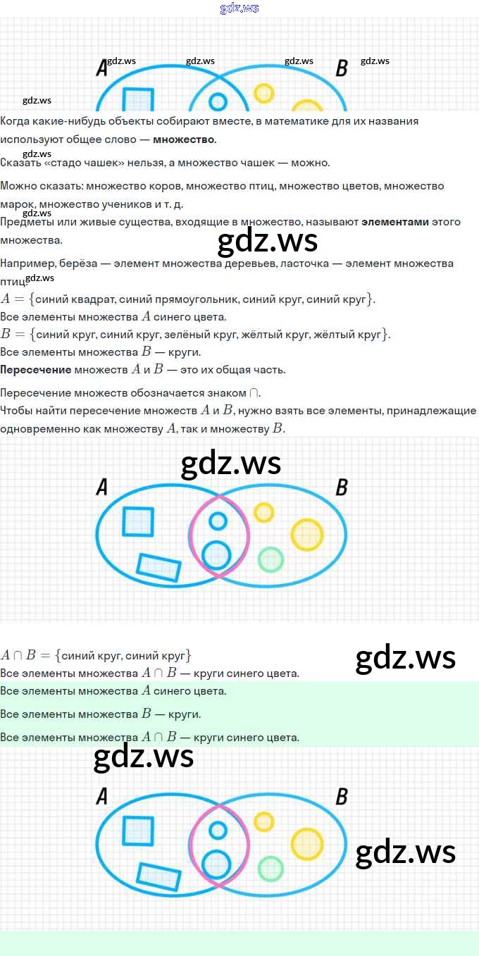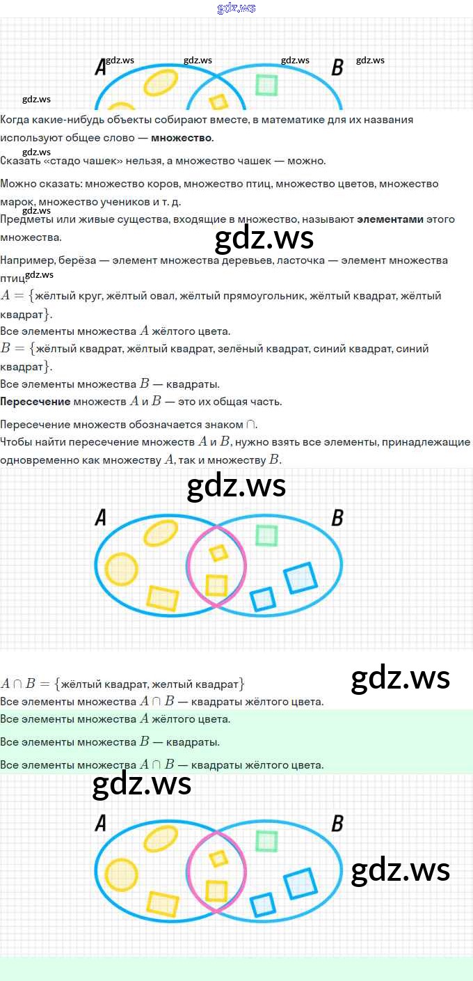 Готовый и полный ответ к Урок 10. Пересечение множеств. Знак ∩ Часть 1 - Математике 3 класс Петерсон Учебник Учусь учиться ФГОС