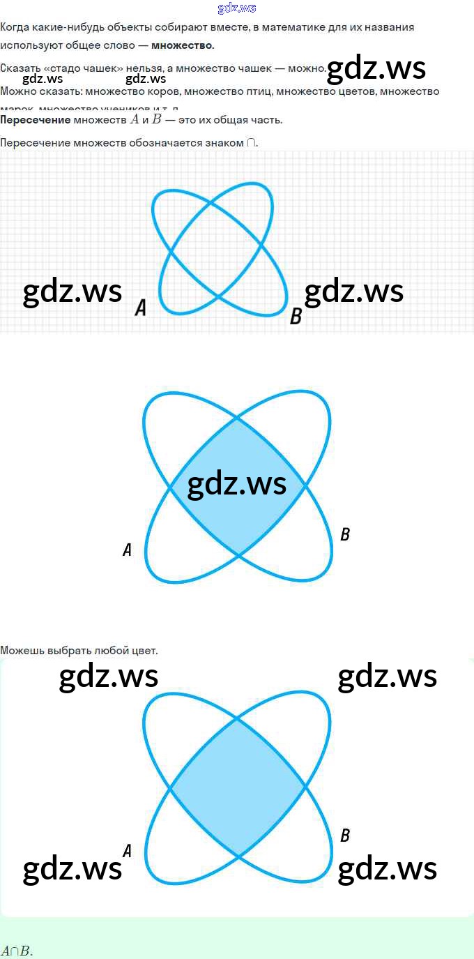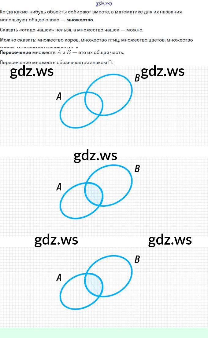 Готовый ответ Урок 10. Пересечение множеств. Знак ∩ Часть 1 - Математике 3 класс Петерсон Учебник Учусь учиться ФГОС