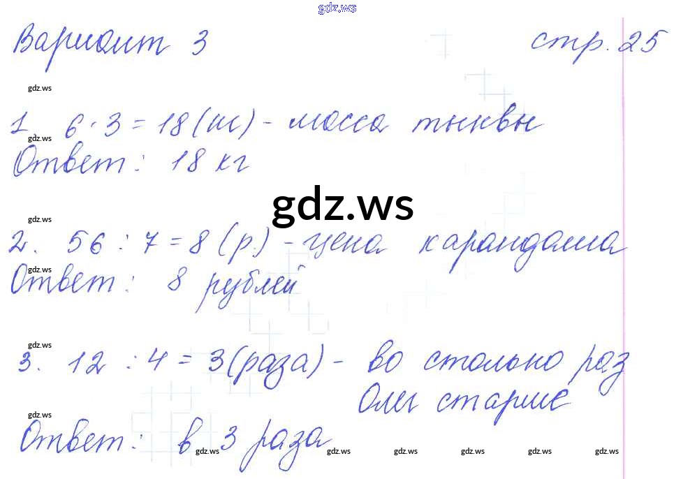 Готовый и полный ответ к Часть 1 (страницы) - Математике 3 класс Рудницкая Контрольные работы УМК ФГОС