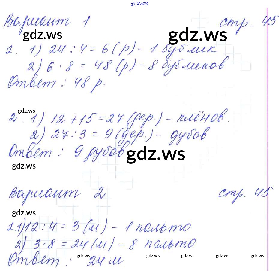 Готовый и полный ответ к Часть 1 (страницы) - Математике 3 класс Рудницкая Контрольные работы УМК ФГОС