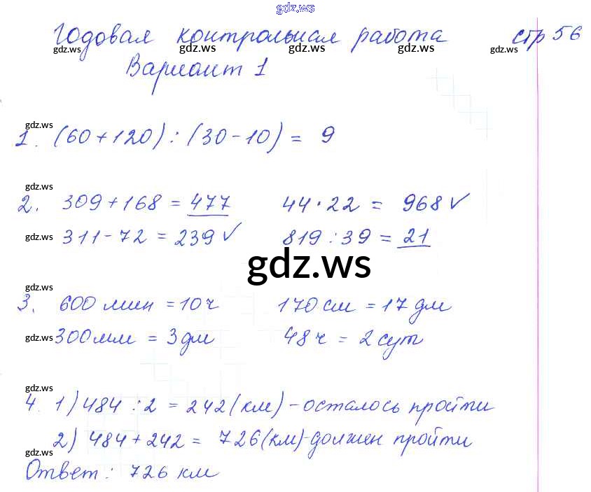 Готовый и полный ответ к Страницы - Математике 3 класс Рудницкая Тетрадь для контрольных работ Начальная школа XXI века ФГОС