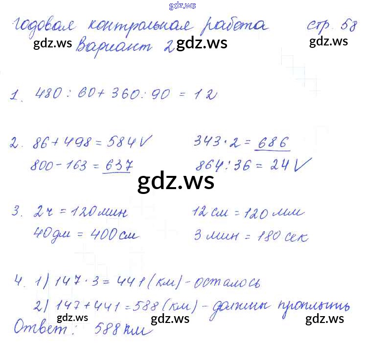 Готовый и полный ответ к Страницы - Математике 3 класс Рудницкая Тетрадь для контрольных работ Начальная школа XXI века ФГОС