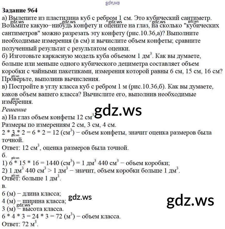 Готовый и полный ответ к 10.3. Объем параллелепипеда Глава 10. Многогранники - Математике 5 класс Дорофеев Учебник ФГОС