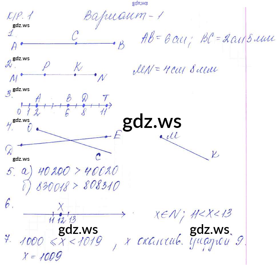 Готовый и полный ответ к КР-1. Варианты - Математике 5 класс Дудницын Контрольные работы УМК ФГОС