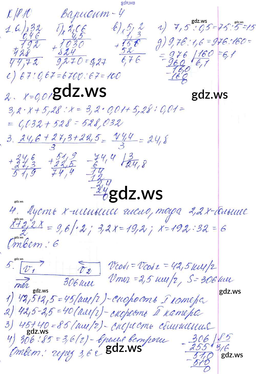 Готовый и полный ответ к КР-10. Варианты - Математике 5 класс Дудницын Контрольные работы УМК ФГОС