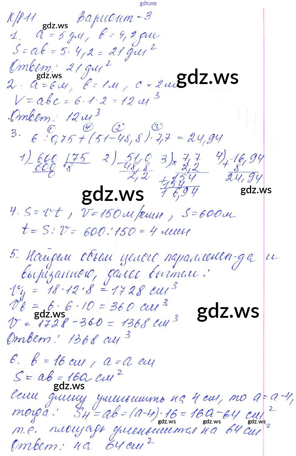 Готовый и полный ответ к КР-11. Варианты - Математике 5 класс Дудницын Контрольные работы УМК ФГОС
