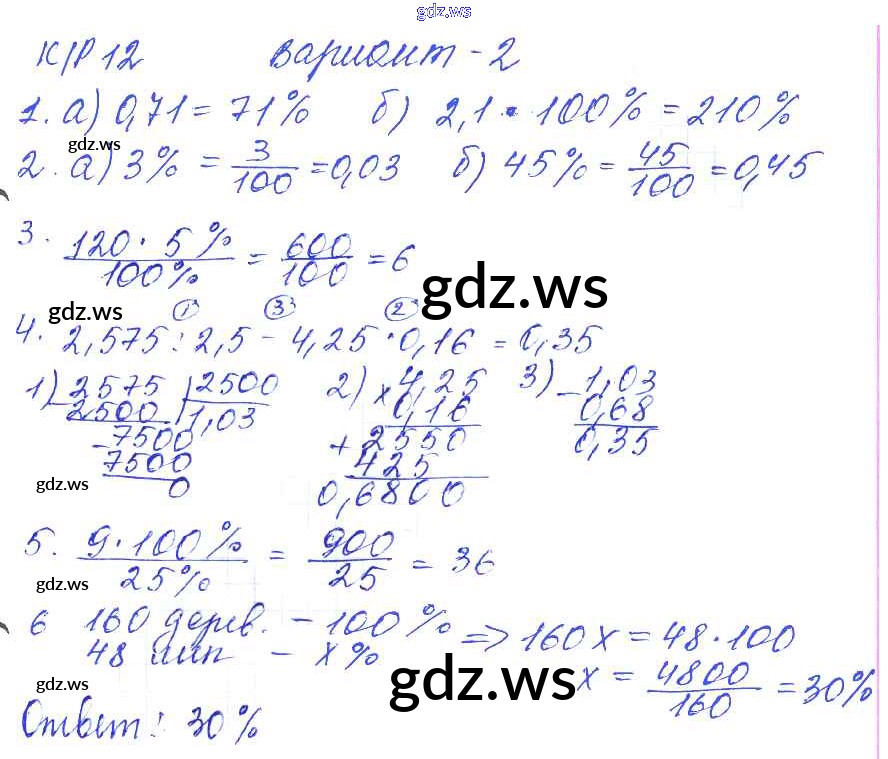 Готовый и полный ответ к КР-12. Варианты - Математике 5 класс Дудницын Контрольные работы УМК ФГОС