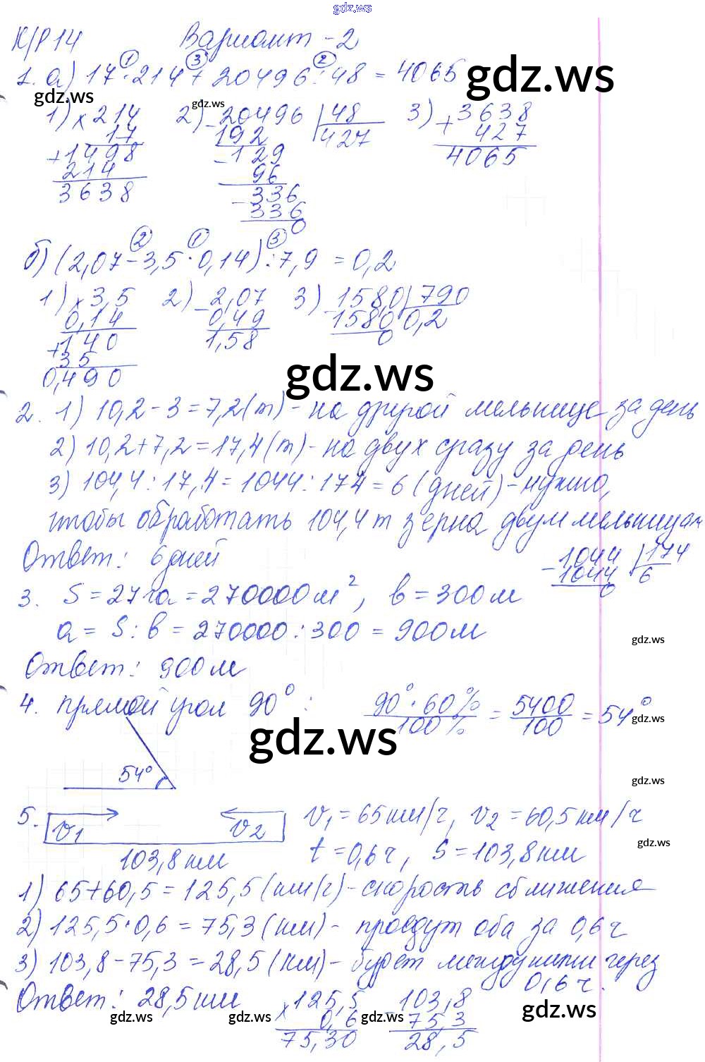 Готовый и полный ответ к КР-14. Варианты - Математике 5 класс Дудницын Контрольные работы УМК ФГОС