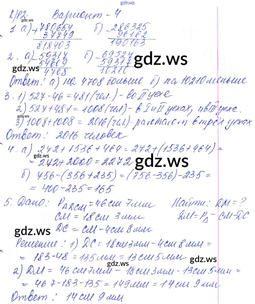 Готовый и полный ответ к КР-2. Варианты - Математике 5 класс Дудницын Контрольные работы УМК ФГОС