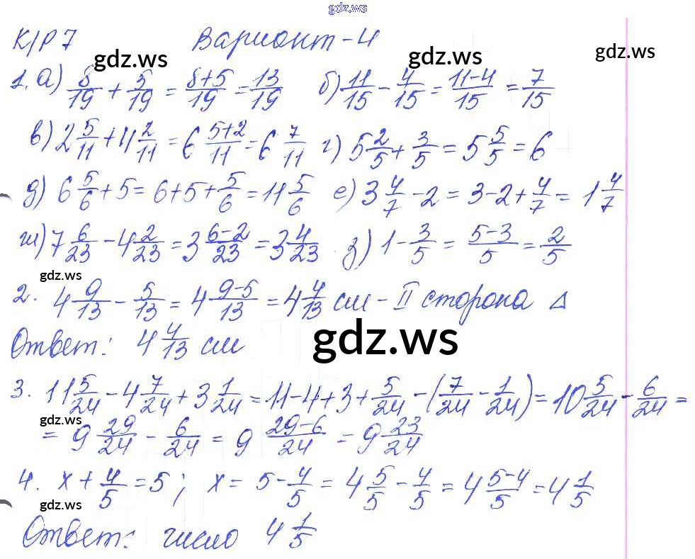 Готовый и полный ответ к КР-7. Варианты - Математике 5 класс Дудницын Контрольные работы УМК ФГОС