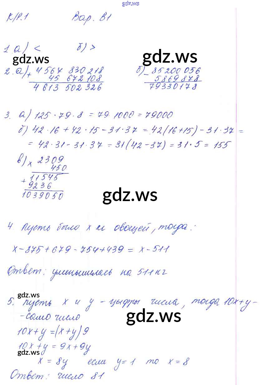 Готовый ответ КР-1. Варианты - Математике 5 класс Ерина Контрольные работы УМК ФГОС