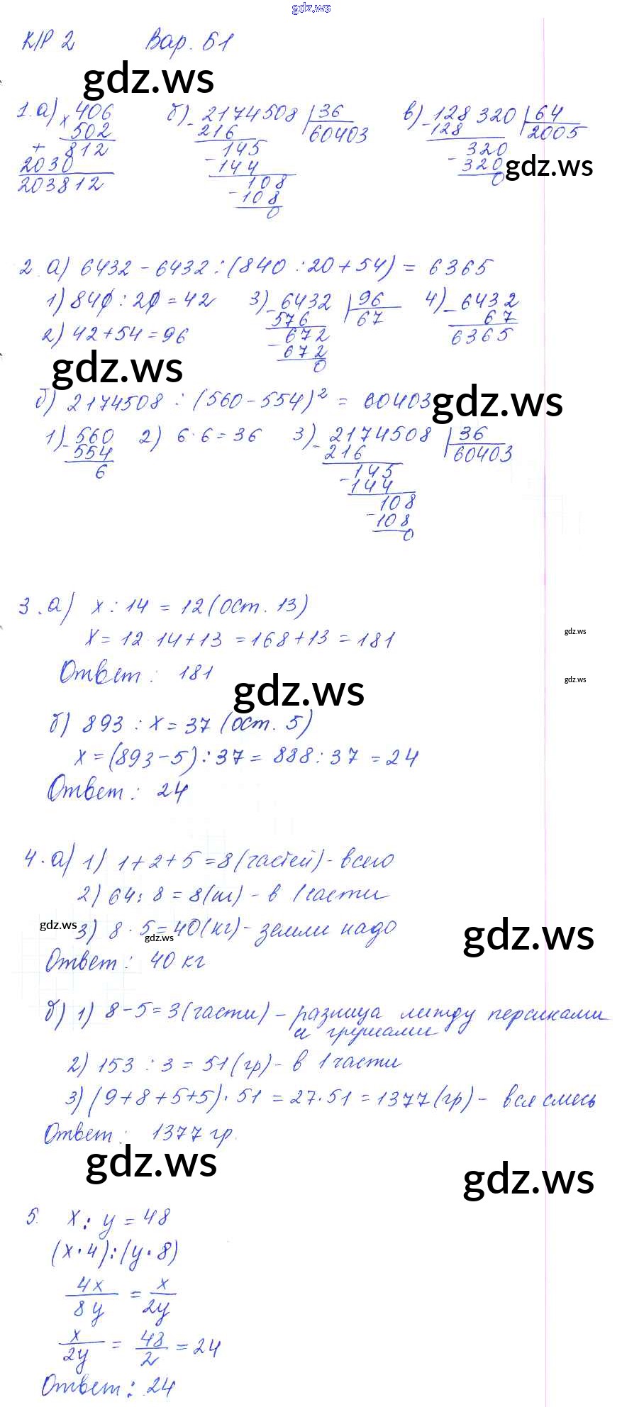 Готовый и полный ответ к КР-2. Варианты - Математике 5 класс Ерина Контрольные работы УМК ФГОС